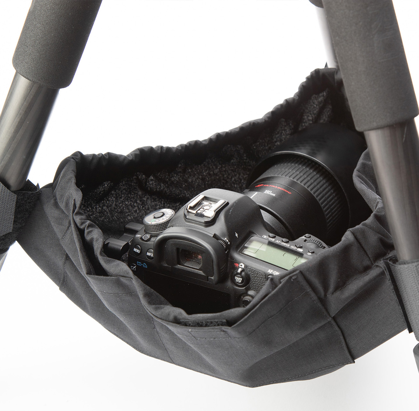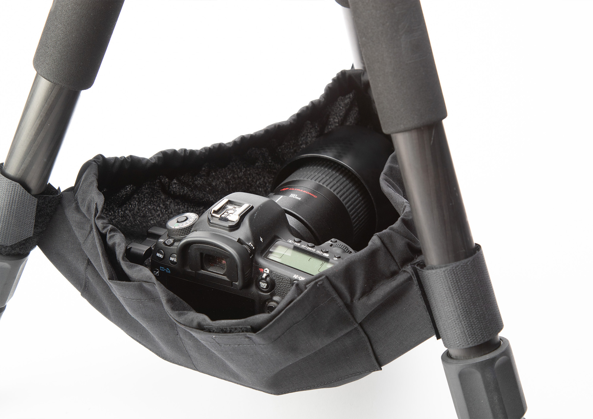 If you own a tripod you will benefit from owning The Tripod Sling. It gives you a place to store all sorts of photographic equipment and accessories, even a full size DSLR, and it's invaluable when changing lenses and filters in the field.