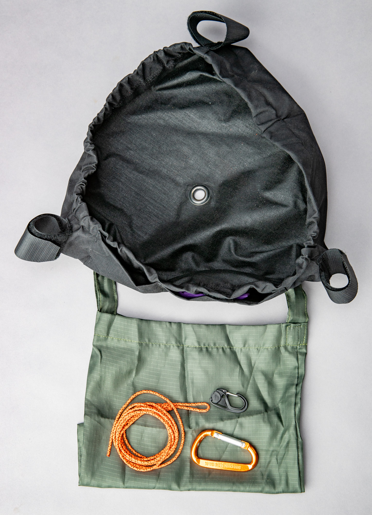 - Rock Bag with rigging: rock bag, carabiner, cord, cam-lock (rocks not included)
